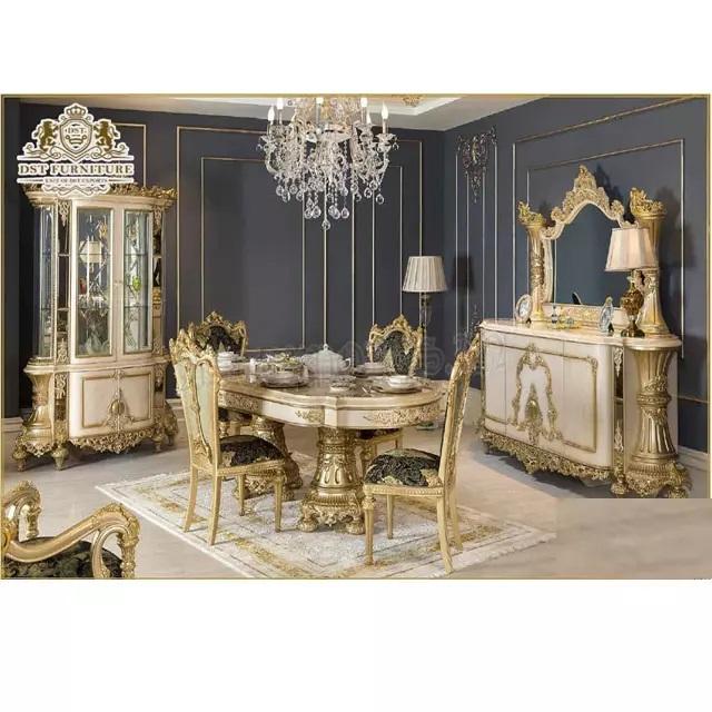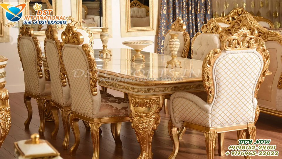 Classic Gold Carved Teak Wood Dining SetProduct name