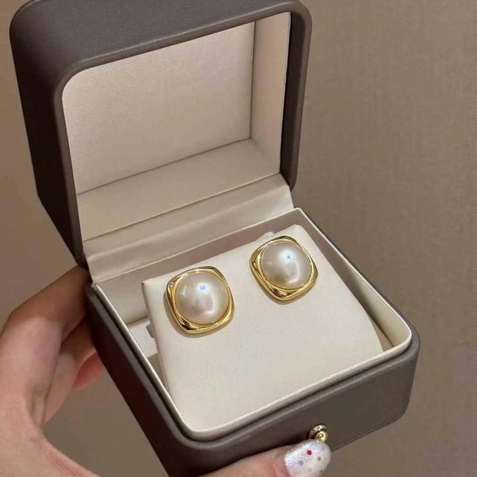 Classic Gold Plated Pearl Jewelry Set White Freshwater Pearl 13-14mm 925 Silver Necklace Earrings Women's Gift