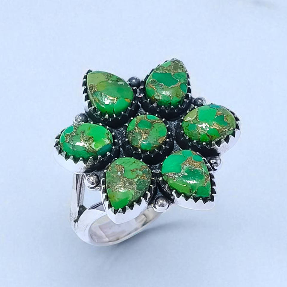 Classic Green Copper Turquoise Gemstone Silver Rings High Polish Sterling Silver Rings & Wholesale Silver Jewelry