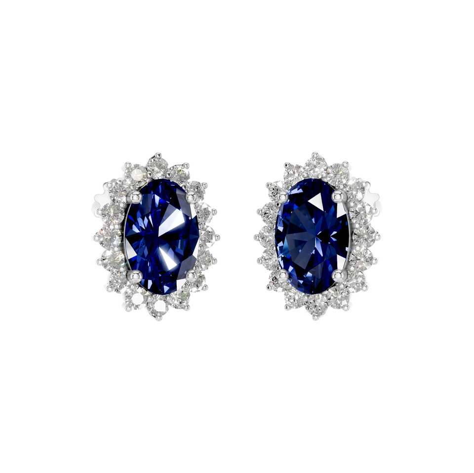Style:Oval-Cut Emerald Halo Stud Earring with Natural Diamonds