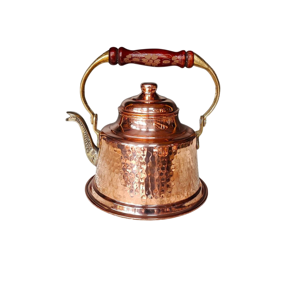Classic Hammered Copper Tea Kettle with Wooden Handle for Royal Kitchen Decor, Tea Serving and Gifting Purpose