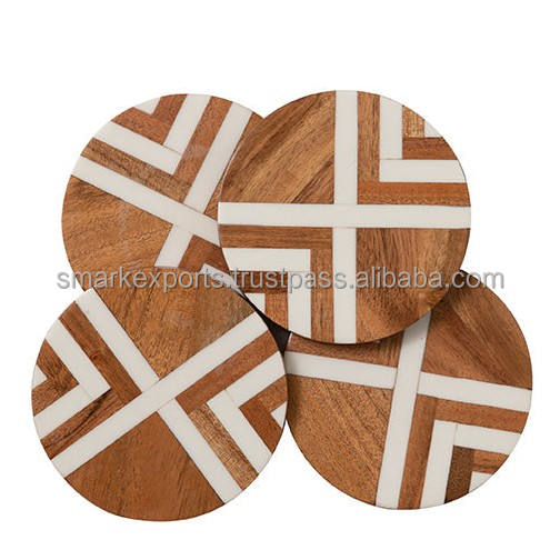 Classic Handmade Eco-Friendly Wood and Resin Coaster Set with Customized Shape for Dining Table Living Room Bar