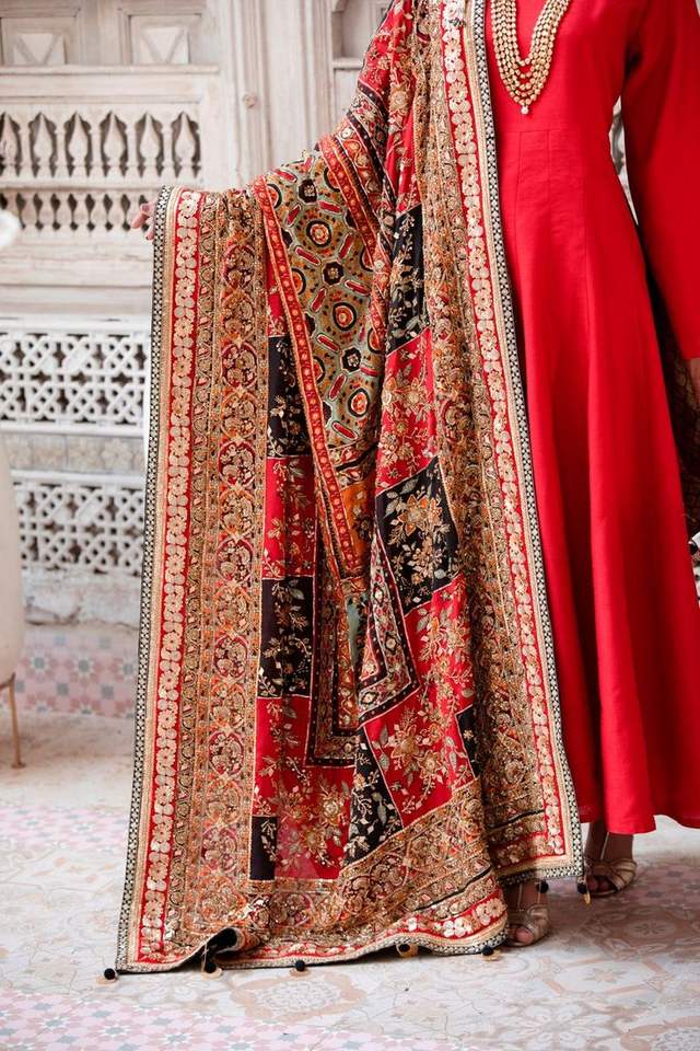 Classic Handmade Embroidered Ethnic Mirror Detailing Dupatta Multicolor Silk Shawl Floral Pattern Long Length Green Pink Brown