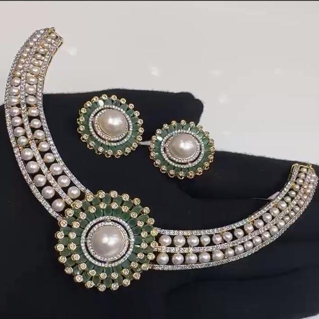 Classic High Quality Gold Plated Pearls Stones Look Necklace Set With Earrings For Wedding Party Wear Collection For Women