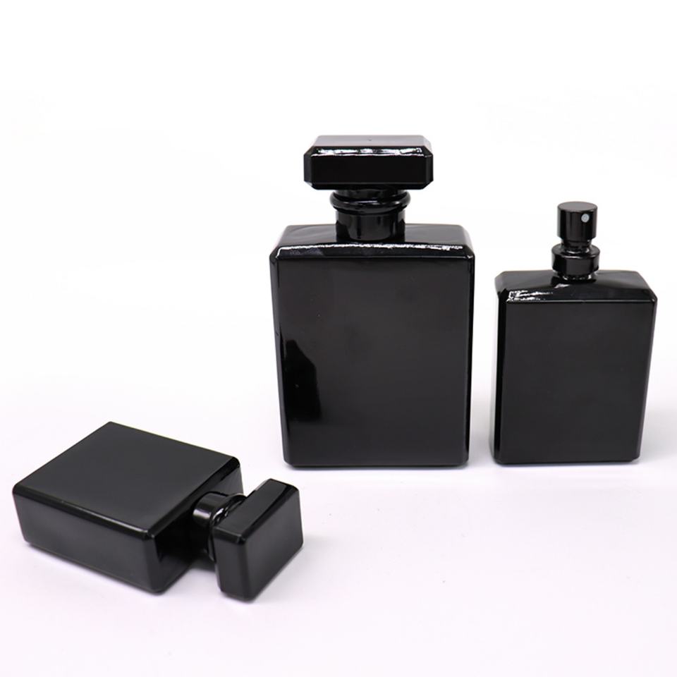 Classic Hot Sale 30ml 50ml 100ml Glass Perfume Bottle Flat Rectangle Refillable Matte Black Perfume Glass Bottle