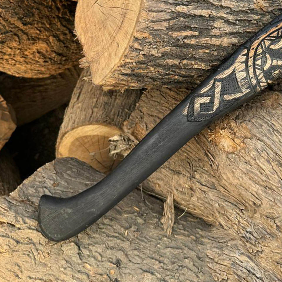 Classic Industrial Grade Viking Axe Inspired by Ancient Scandinavia with Decorative Head and Artisan Wood Handle