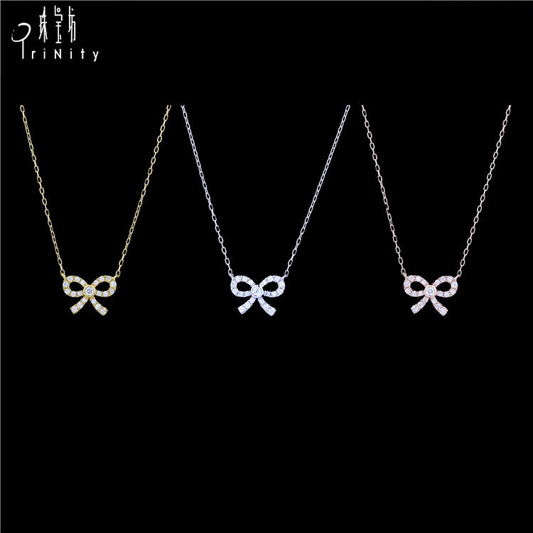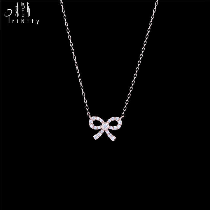 New Trendy Jewelry Bowknot Design 18K Solid Gold Necklace Real Natural Diamond Necklace Beautiful Pendant Necklaces For Girls
