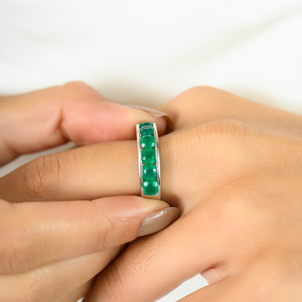 Classic Jewelry Solid 925 Sterling Silver Handmade Real Emerald Half Eternity Band Rings New Trendy Products Shop Now Stunning
