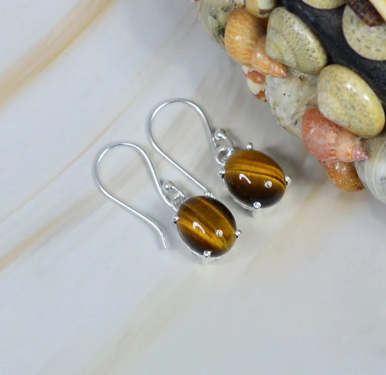 Classic Jewelry Tiger Eye Oval Shape Gemstone Earrings 925 Sterling Silver Handmade Gift for Christmas Factory Price