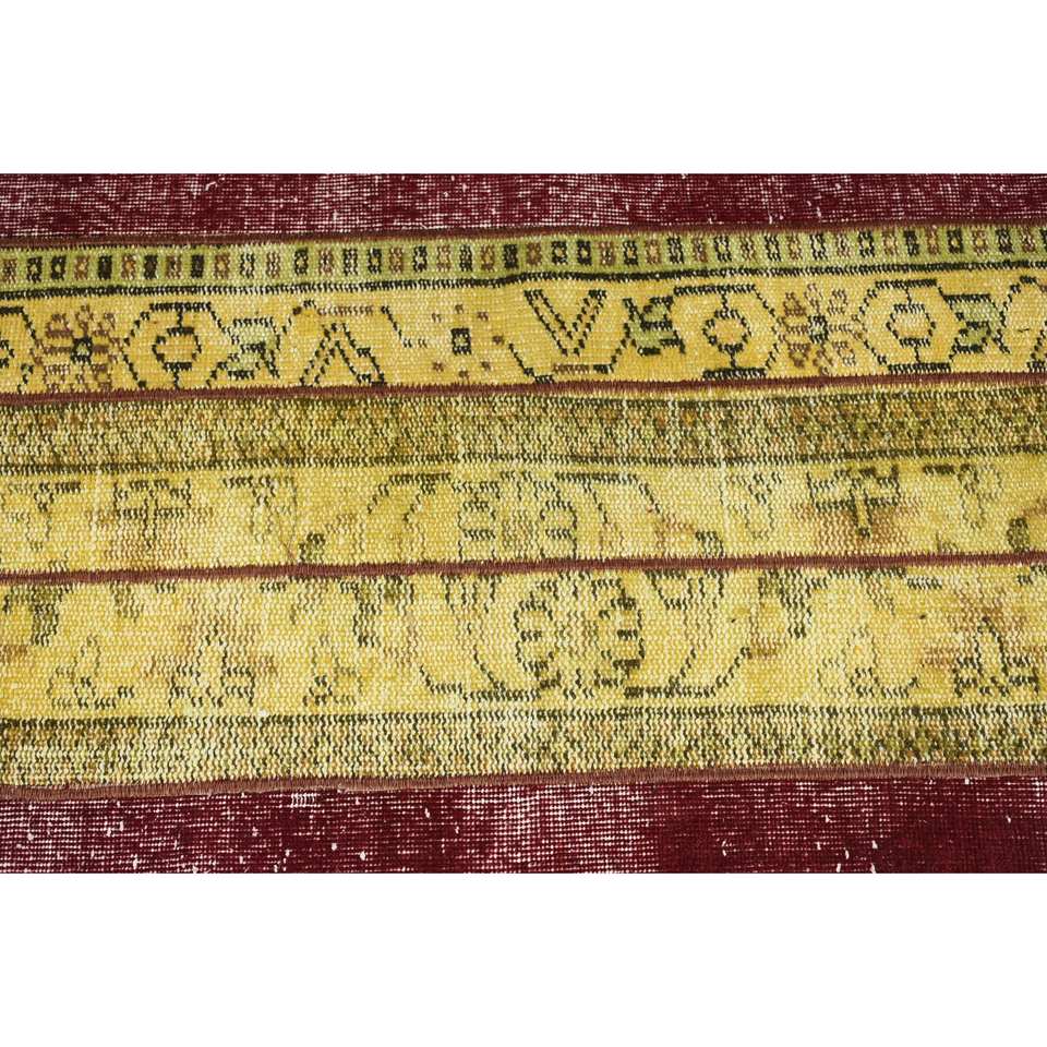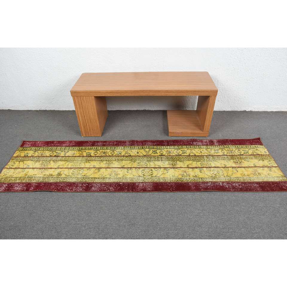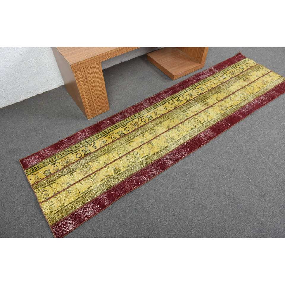 Classic Large Area Turkish Rug 2.1 X 7.7 ft Yellow Red Kilim Style with Abstract Pattern Wool Latex Backing 10mm Thickness
