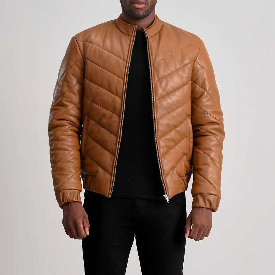 Classic Leather Puffer Jacket For Men Soft Warm Design Perfect Winter Wear Elegant Quilted Outerwear Fashion Choice