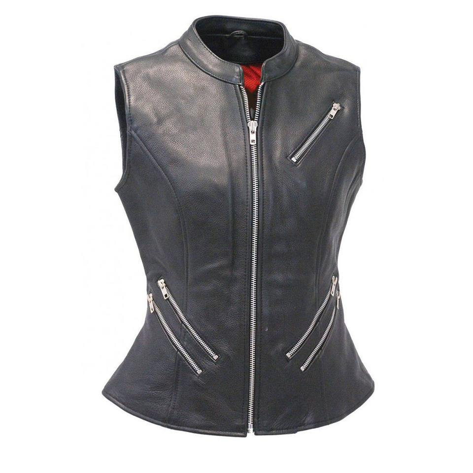 Classic Leather Slim Fit Women's Zip-Up Real Lambskin Leather Motorcycle Vest Casual Fashion Moto Biker Leather Jacket Women
