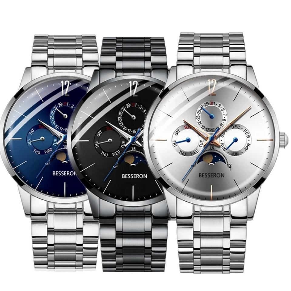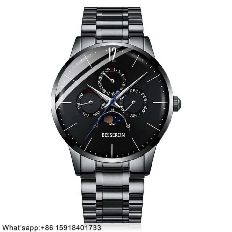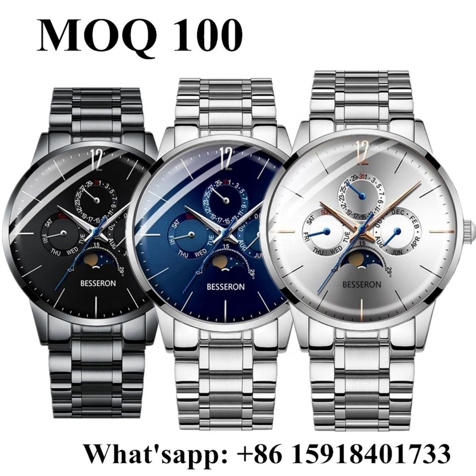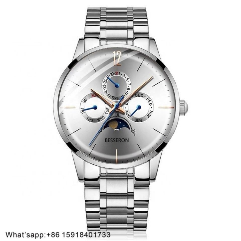 Classic Limited Edition Japan Chronograph Movement Luxury Fashion Business Moon Phase Analog Dial Stainless Steel Watch Men