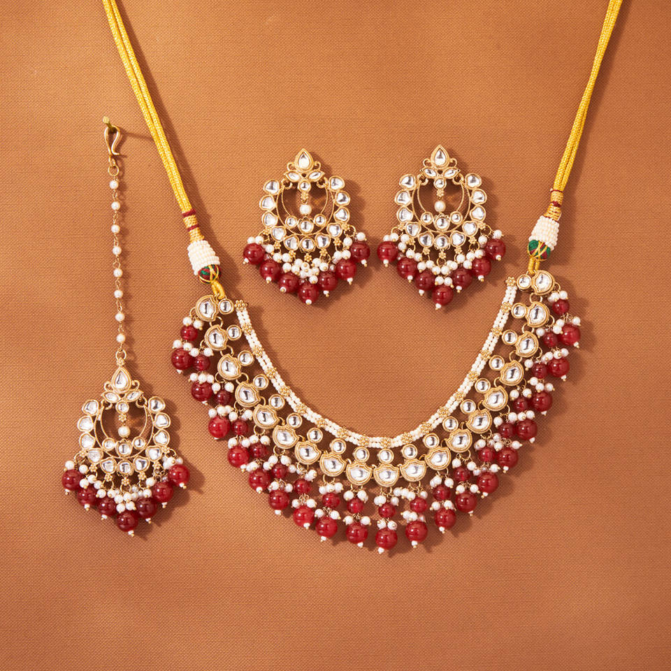 Set include:1 Necklace, 1 Maang tikka & 1 Pair of Earring