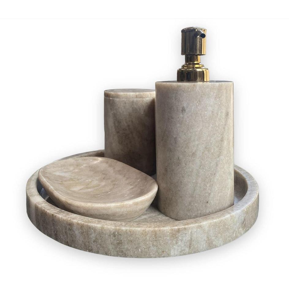 Classic Looking Bathroom Set Resin Good Looking Soap Dish Toothbrush Holder and Liquid Dispenser Pack of 4 at Reasonable Price
