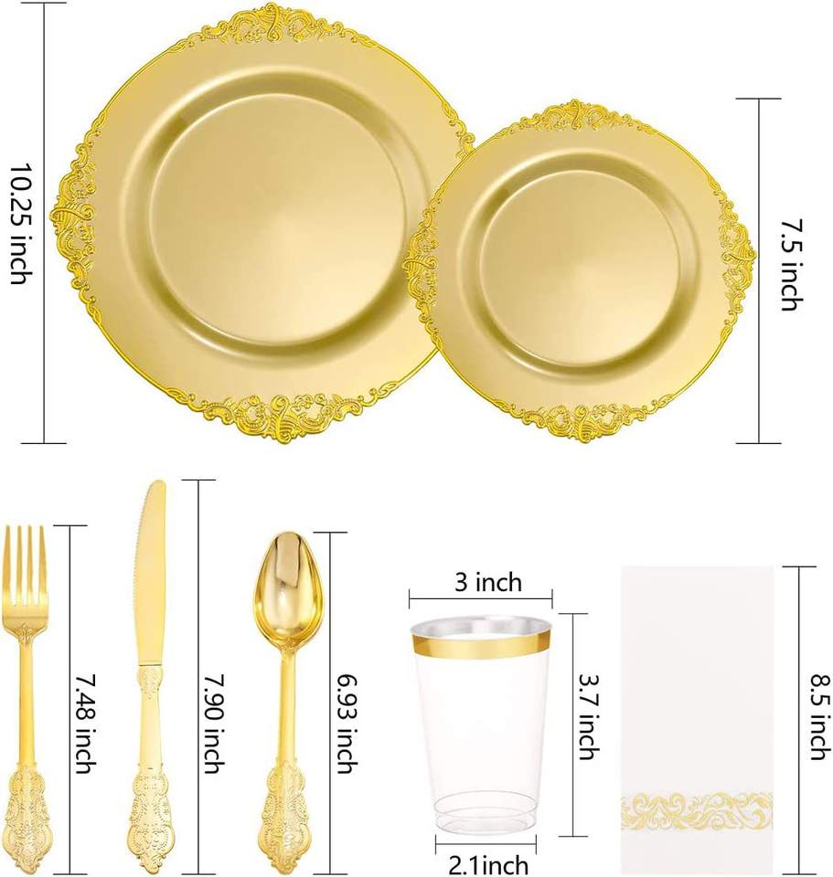 Classic Luxury 175 Pieces Disposable Dinnerware Sets Gold Lace Plates Dinnerware Sets for Party