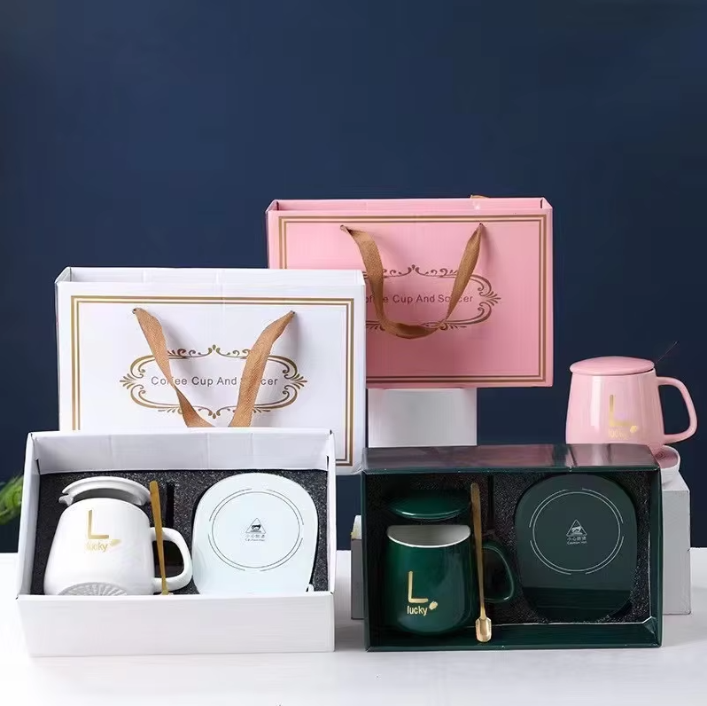 Classic Luxury Back to School Portable Intelligent Heating Smart Temperature Bone China Reusable Mug Warmer with Coaster Spoon