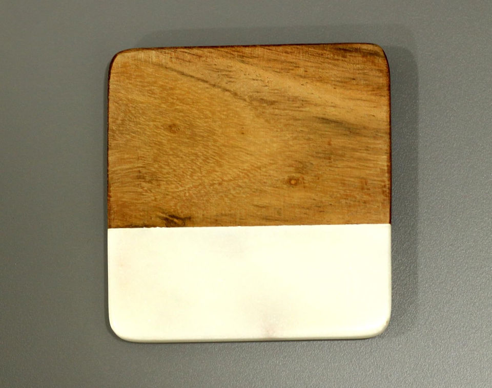 Classic Marble Effect Resin Coasters Wood Base with Swirl Design Elegant for Tables