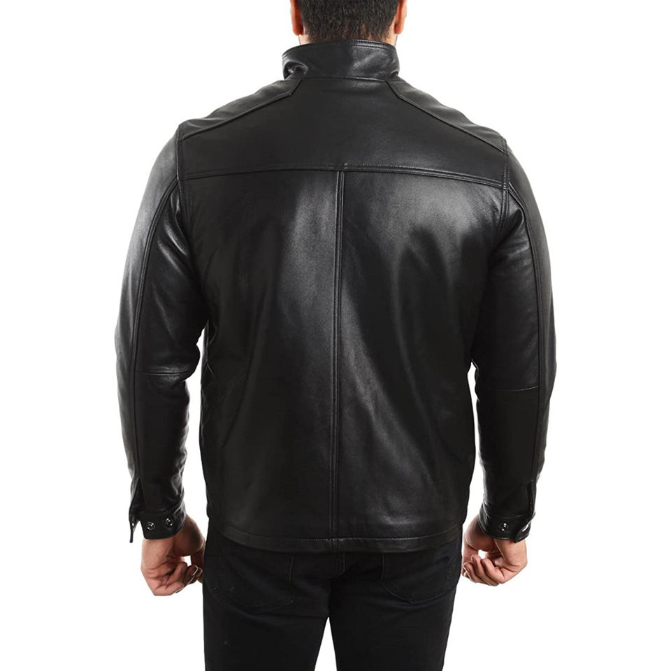 Classic Men's Genuine Leather Jacket With Zipper Closure - Fashionable Outerwear For Stylish Menswear