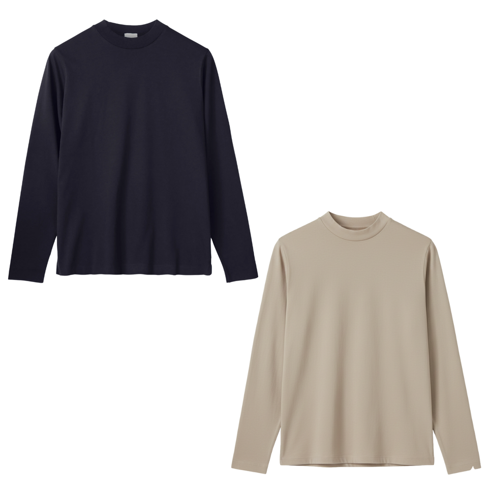 Classic Men's Mock Neck Long Sleeve Tee Premium Cotton Basic Top Custom Logo Print/Embroidery Tshirt Direct Manufacturer Bulk