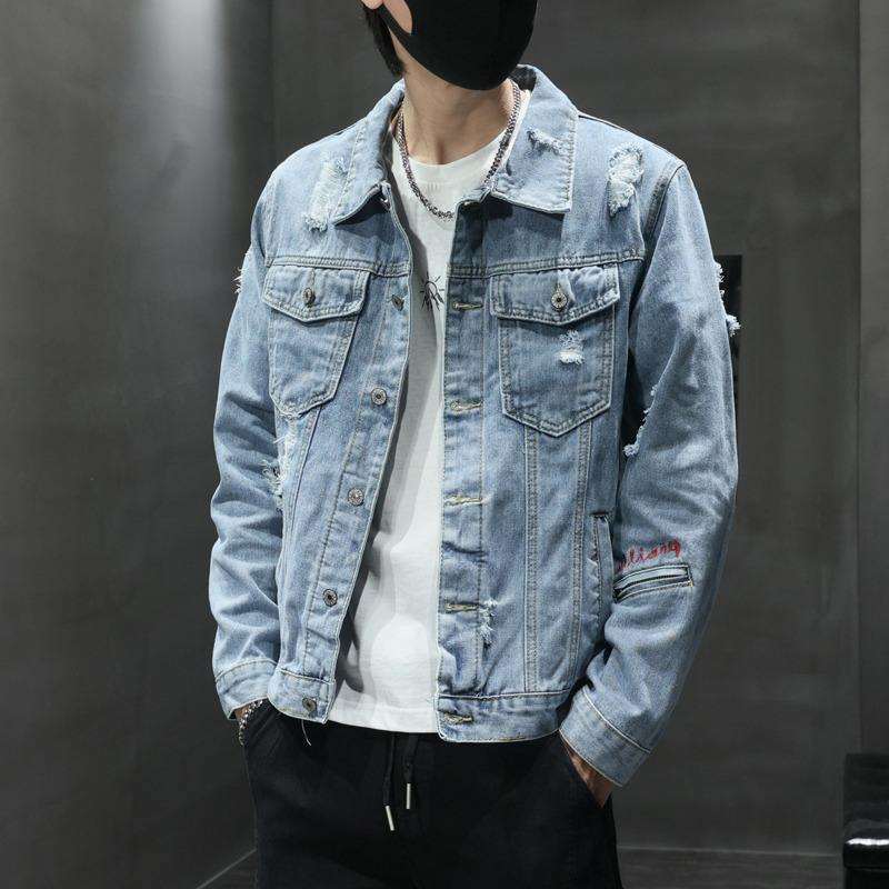 Classic Men's Slim Fit Denim Jacket Trucker Style with Button Down Cowboy Cut OEM Service Jean Outerwear for Spring