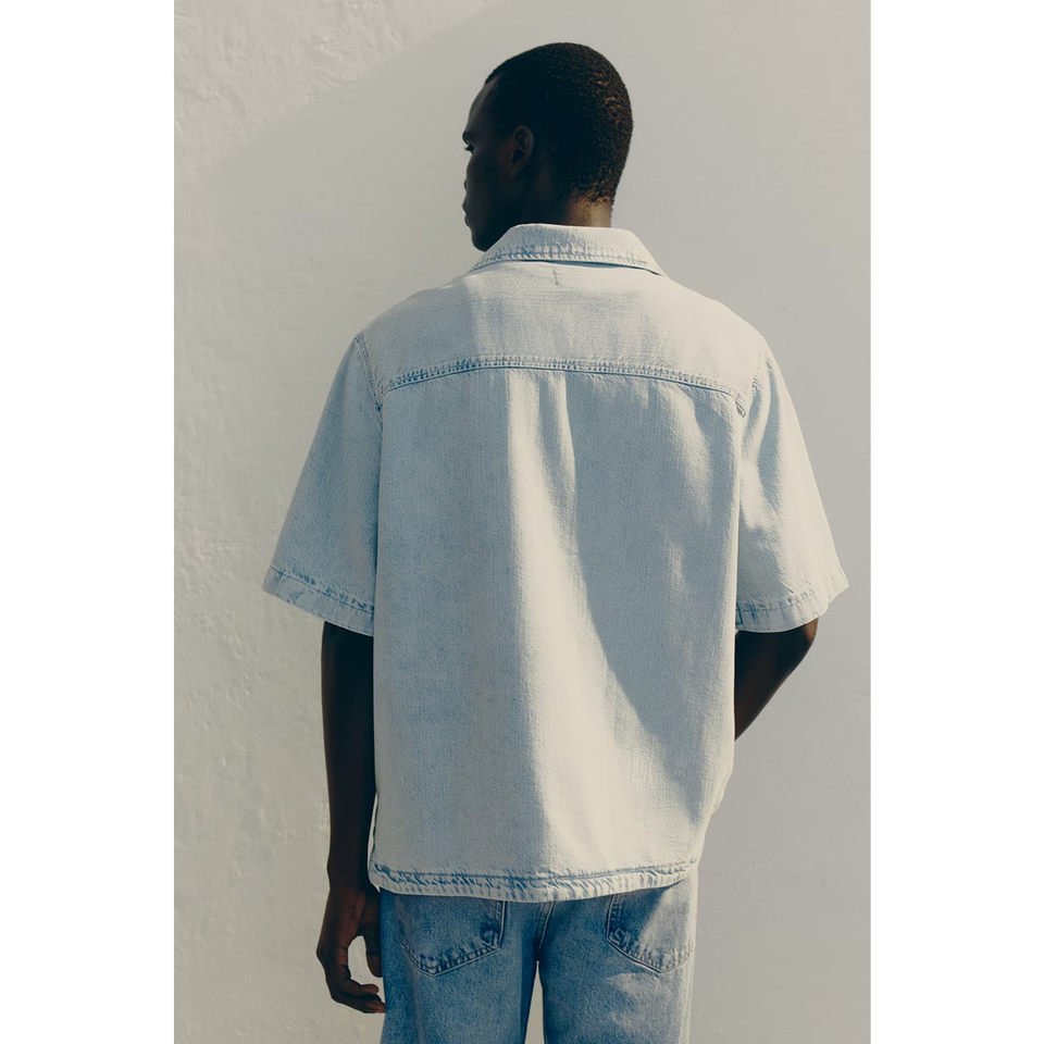Men's Loose Fit Short Sleeve Henley Neck Dress Shirt Summer Suit for Southern Regions
