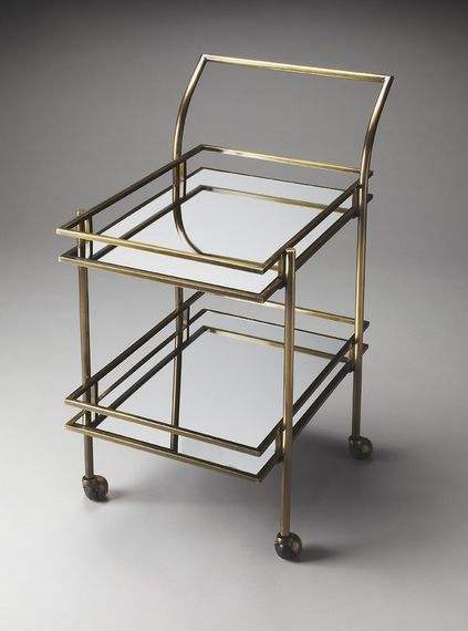 Classic Metal Two Tier Serving Trolley With Polished Metal Shelves For Stylish Storage And Hosting Essentials