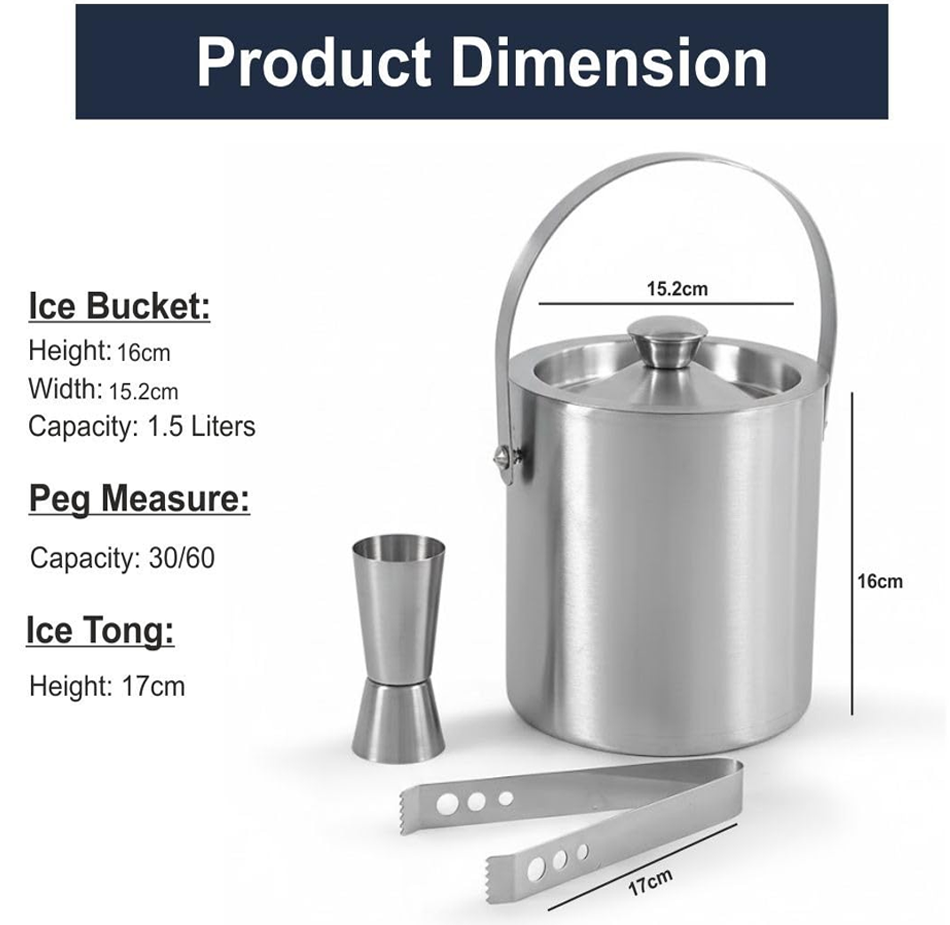 Stainless Steel Ice Bucket + Tong + V Peg Measure