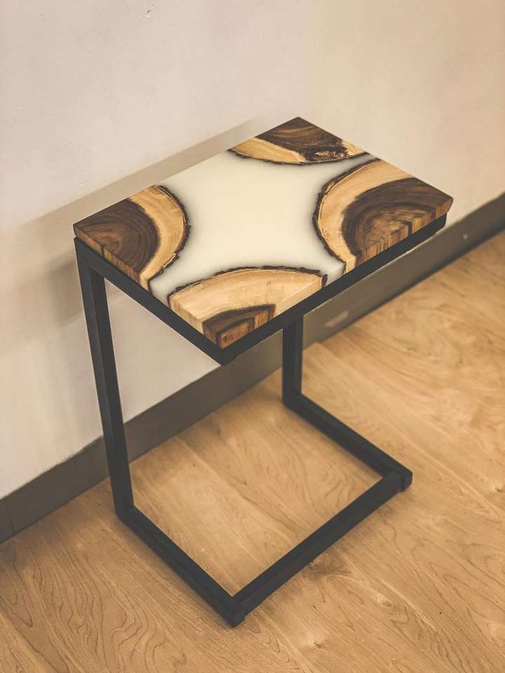 Classic Modern Indian Handicraft Live Edge Block Side Table Natural Acacia Wood Epoxy Resin for Living Room Furniture Sofa Table