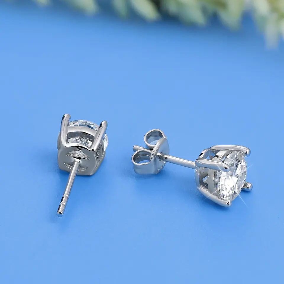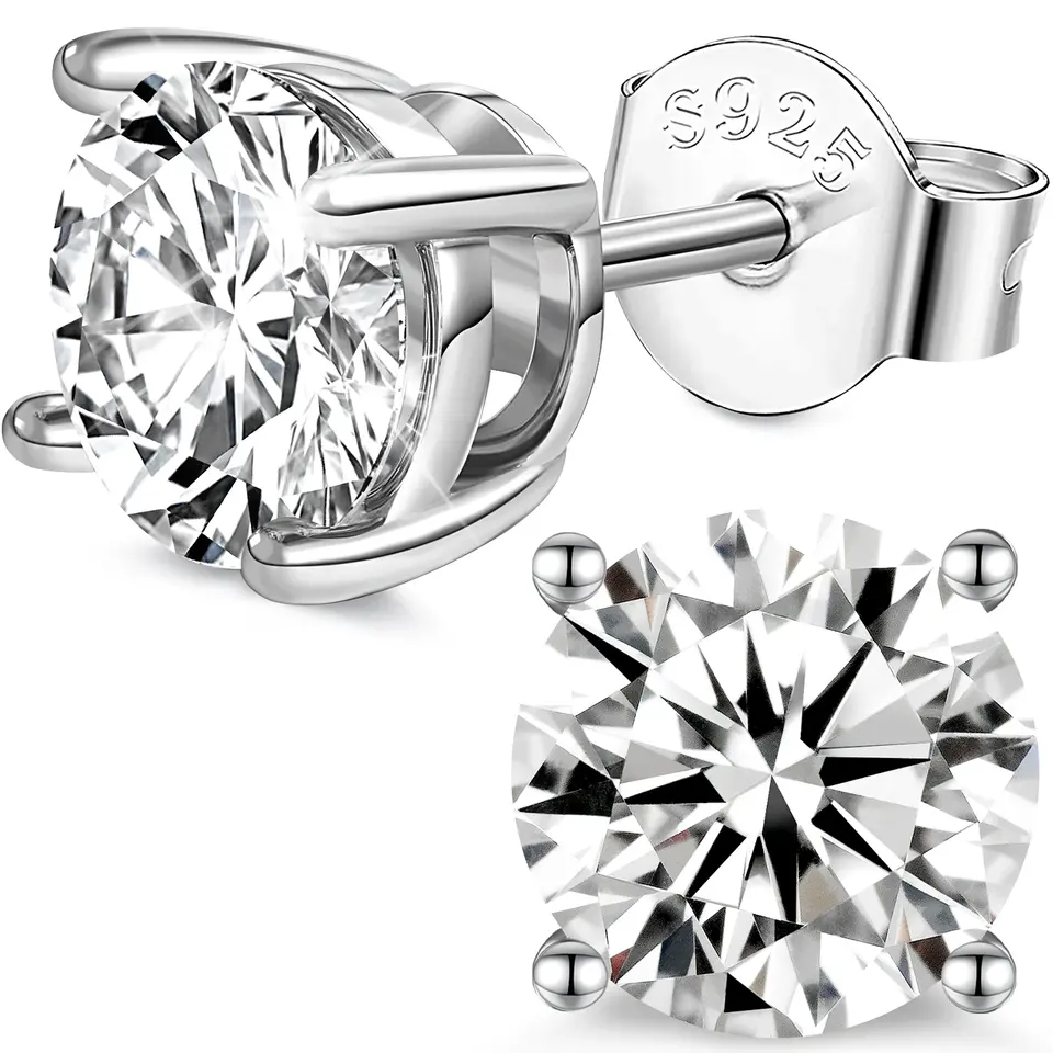 Classic Moissanite Stud Earrings 925 Sterling Silver VVS Lab Diamond Solitaire Sparkly Round Cut Earrings for Women and Men