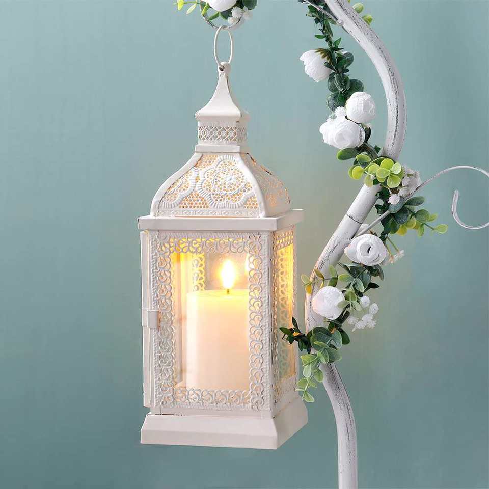 Classic Moroccan Decorative Lantern with White Metal Hanging Candle Holder for Wood Candle at Export