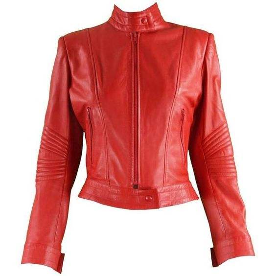 Classic Motorcycle Jacket Women's RED Color Sheepskin Coat Genuine Leather Zipper Topcoat