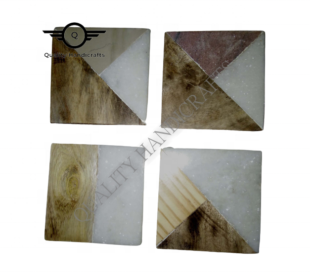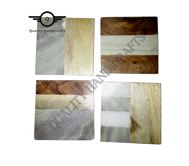Classic Natural Edge Stone Drink Square Eco-Friendly 10x10 CM Mango Wood & Resin Coasters for Bar Home for Style Functionality