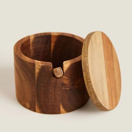 Classic Natural Wooden Kitchen Decor Sugar Pot With Spoon Deluxe Quality Decorative Modern Wooden Sugar Containers Cheap Price