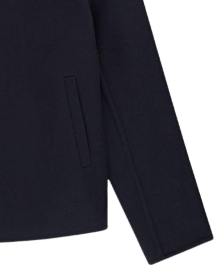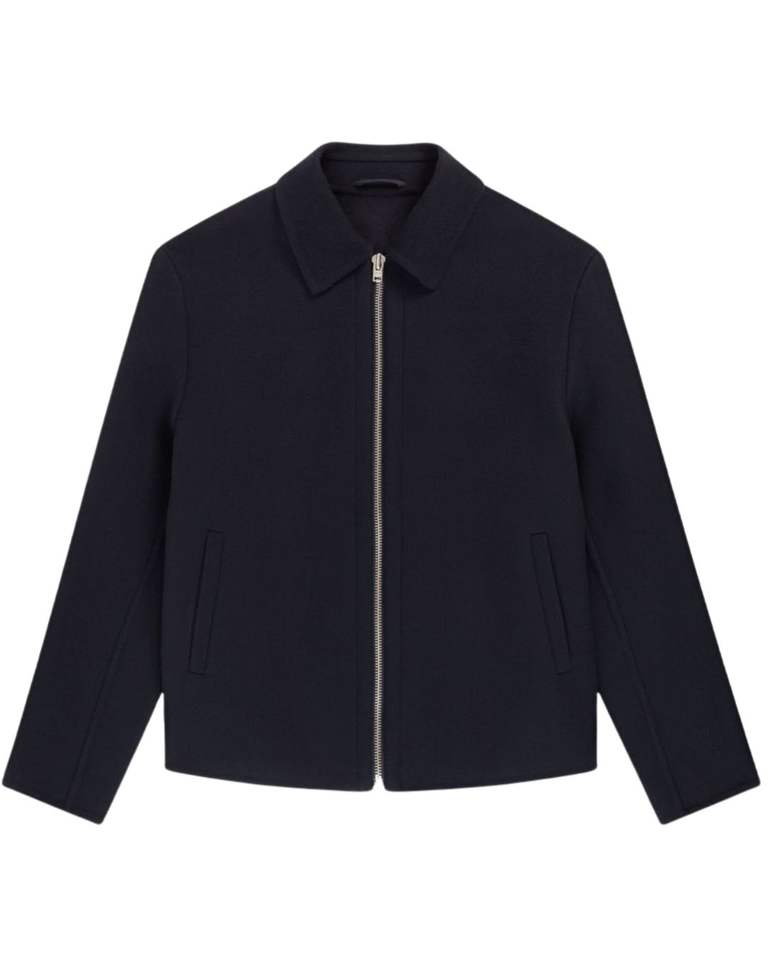 Classic Navy Wool Zip Up Jacket With Point Collar And Minimalist Design For Men Casual Winter Outerwear In Dark Blue