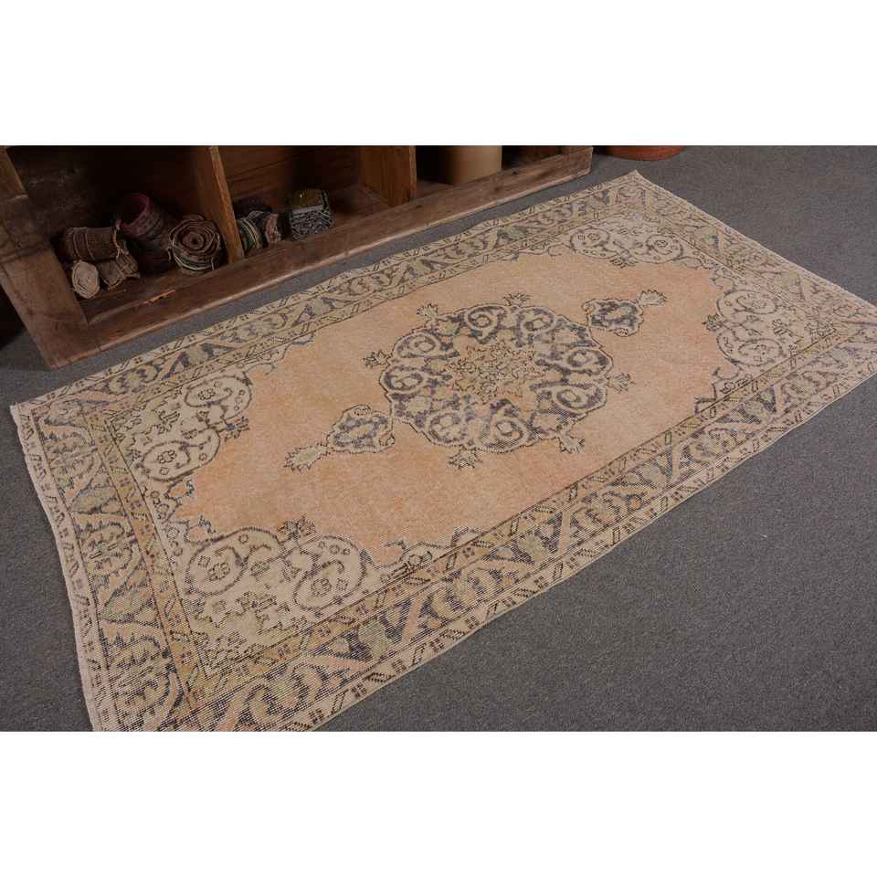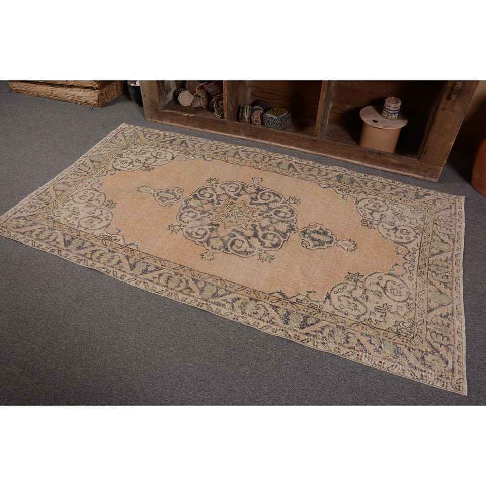 Classic Oriental Beige Wool Rug 3.6 X 6.6 ft Handmade Vintage Turkish Patchwork Design Latex Rectangular Hallway for Bedside Use