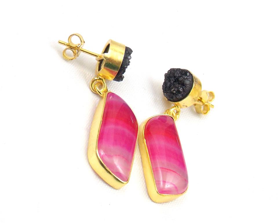 Jewelry Name:Pink Agate and Black Druzy Gemstone Stud Earring