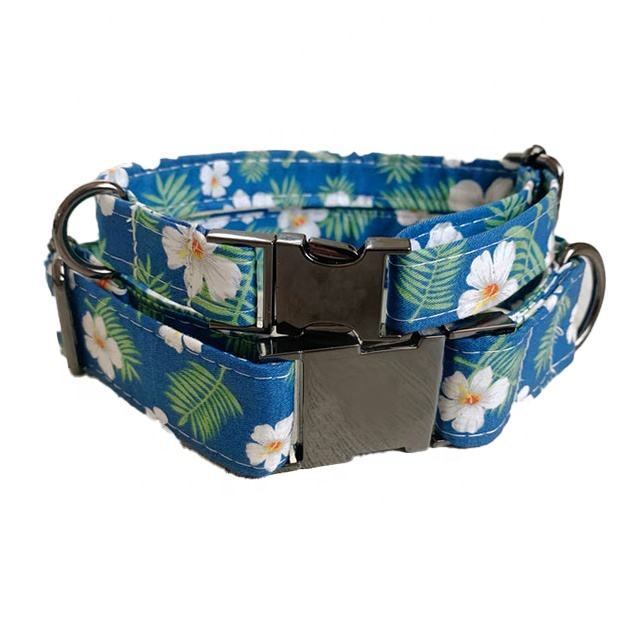 Product name:Blue Floral Design Cotton Dog Collar