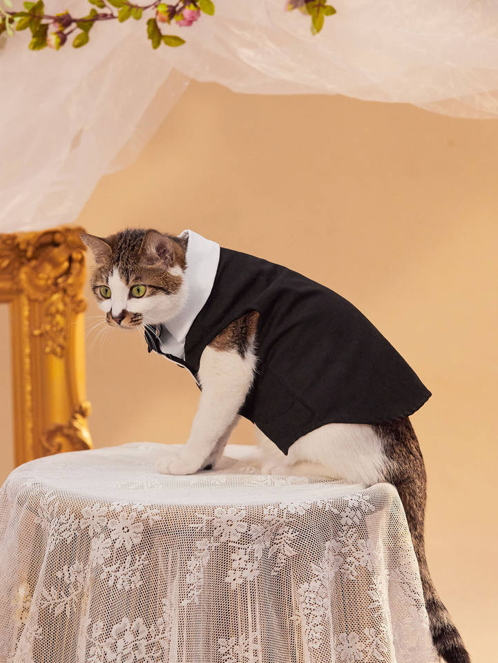 Classic Pet Tuxedo for Dogs & Cats - Wedding Suit with Bowtie & Vest, Summer Black Formal Blazer Button Closure