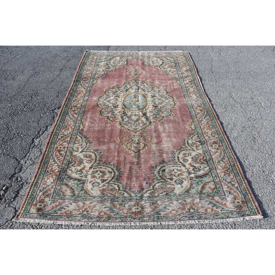 Classic Pink and Blue Handmade Wool Rug 5.1 X 8.5 ft Turkish Tabriz Style with Patchwork Pattern Latex Backing for Living Room