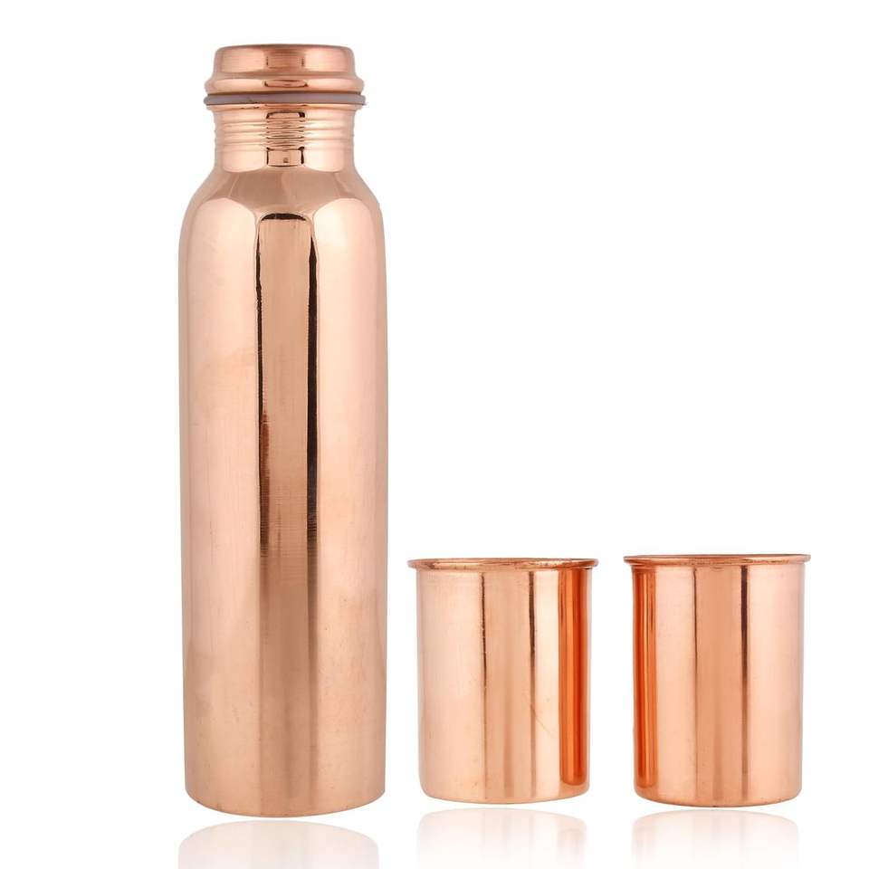 Classic Plain Copper Bottle and Glass Plain Copper Water Bottle with Matching Glass Pure Copper Bottle and Glass
