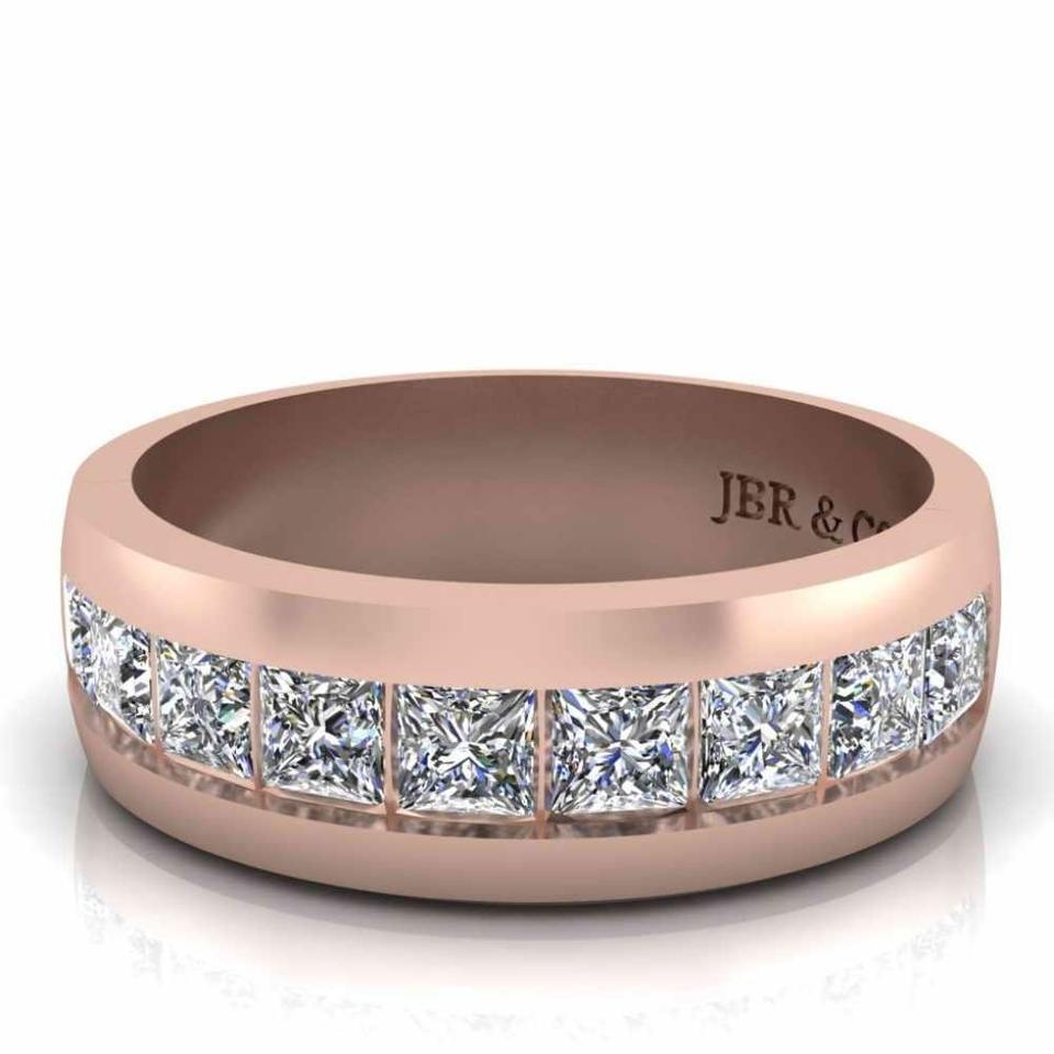 Classic Princess Cut Diamond Rose Gold Plated 925 Sterling Silver Channel Set Wedding Band Ring For Men Fashion Wholesaler