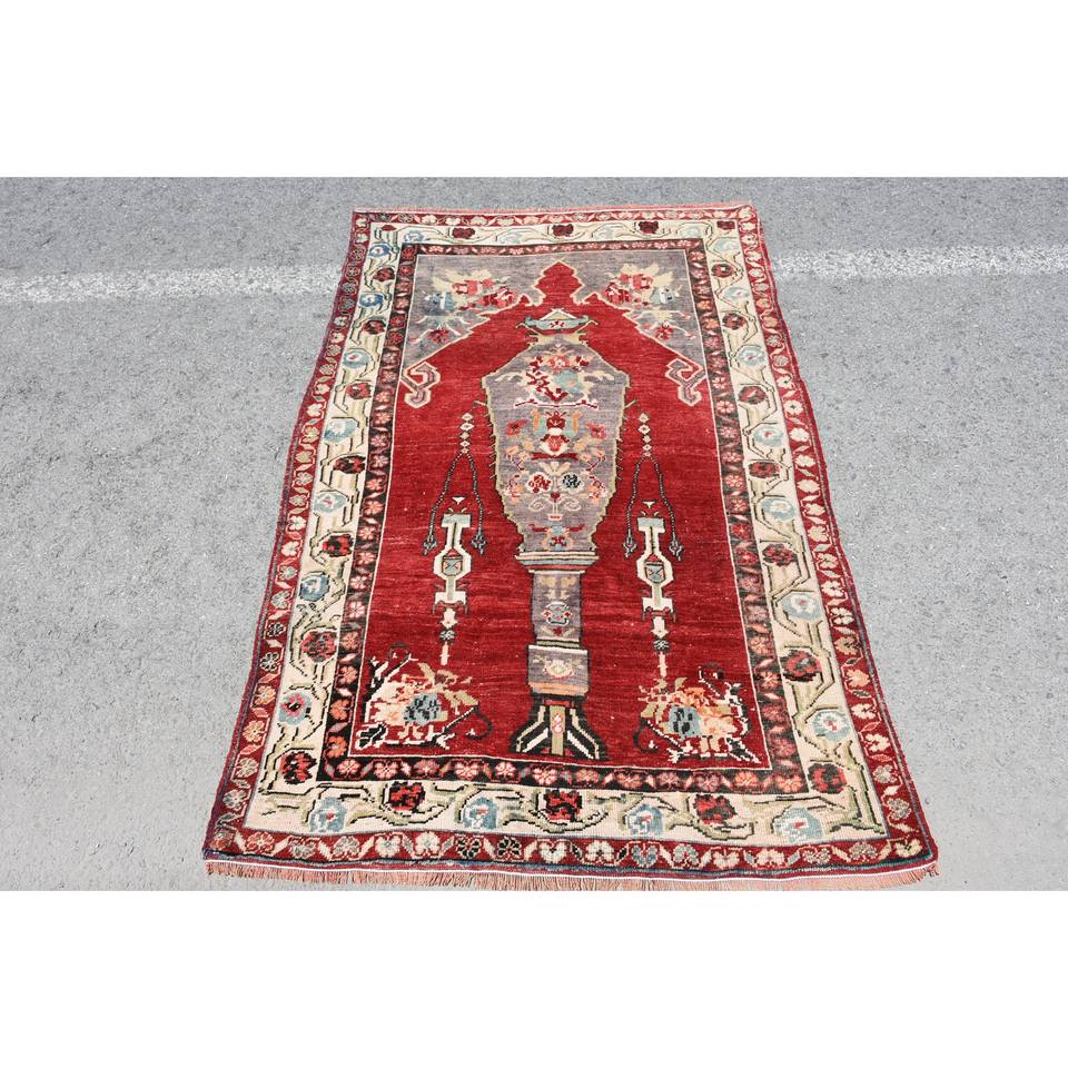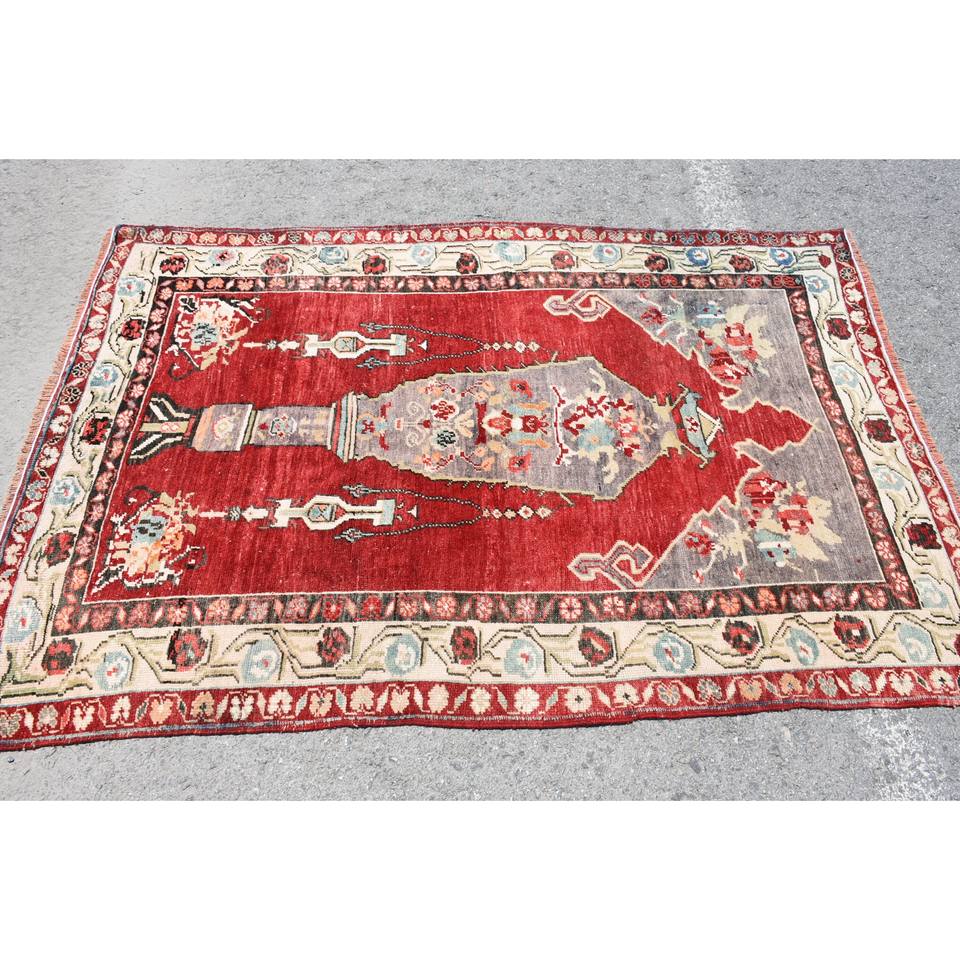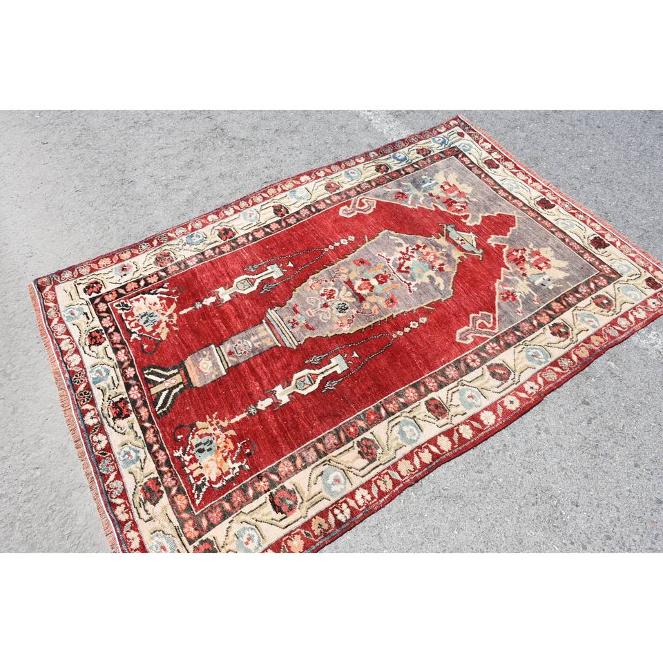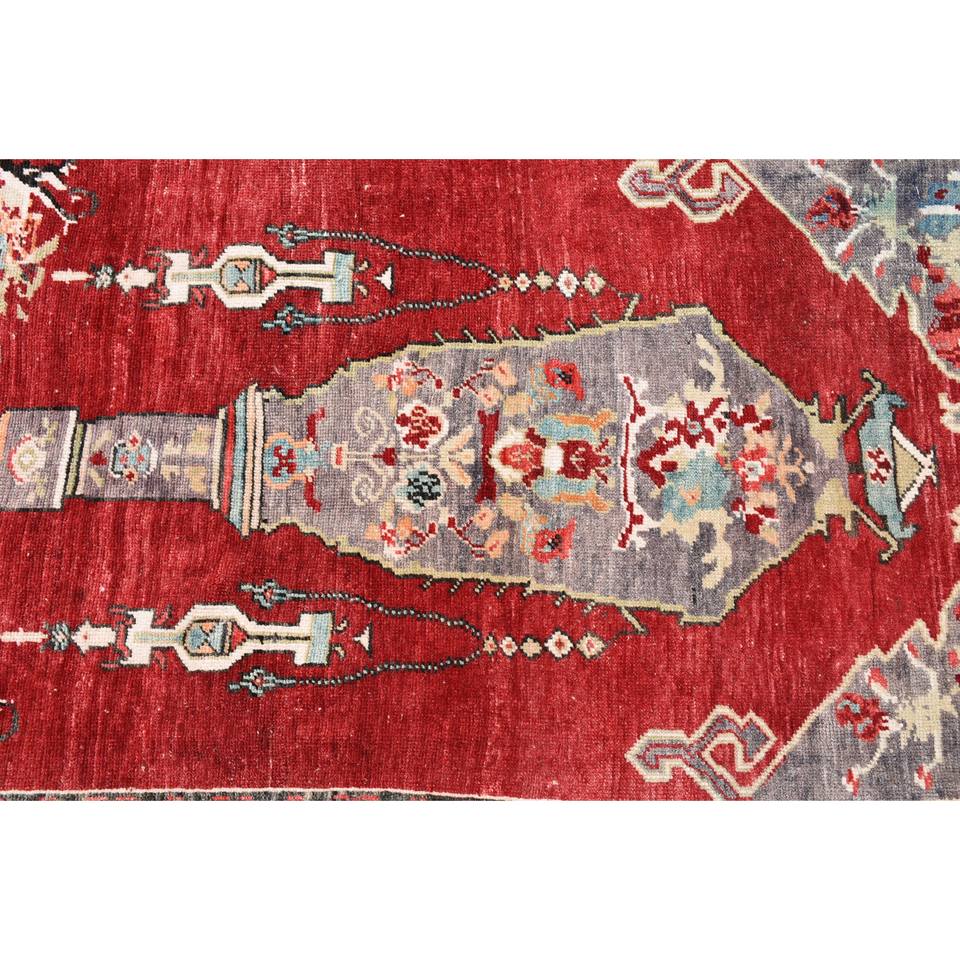 Classic Red 9x12 Large Area Turkish Wool Rug 10mm Thickness 3,8x5,8ft Patchwork Pattern for Entryway Hallway Teen's Room-Latex