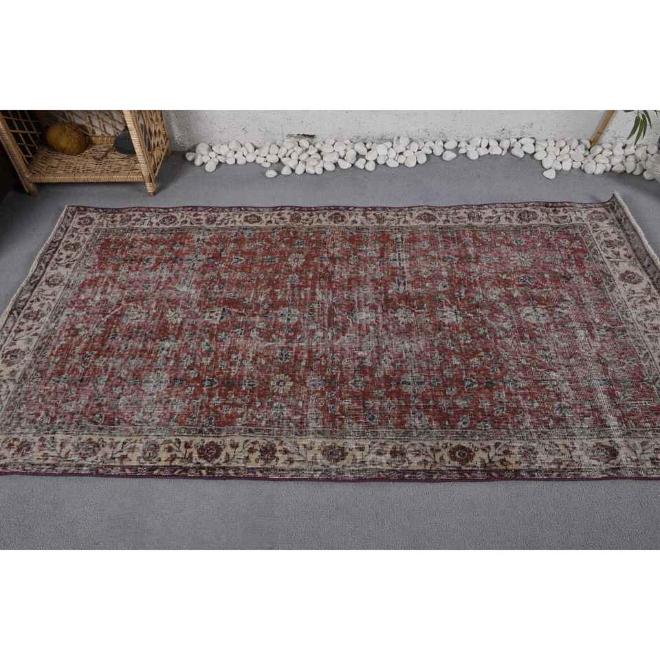 Classic Red Beige Vintage Turkish Large Area Rug 3.5' X 6.6' Rectangle Patchwork Design for Hallway Room Wool Latex for Bedside