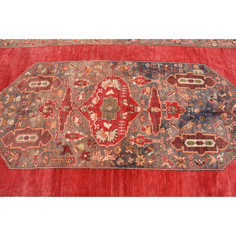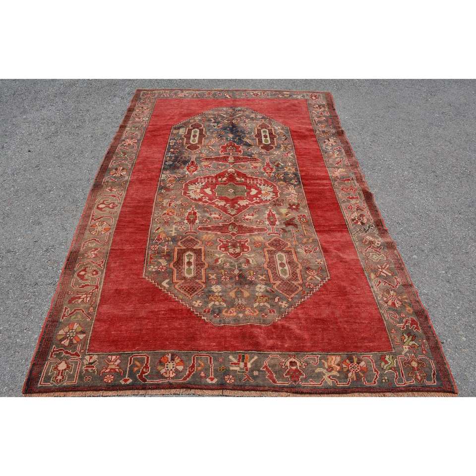 Classic Red Beige Wool Rug 4.9 X 7.9 ft Vintage Turkish Large Area Flat Weave Patchwork for Living Room Decorations Latex