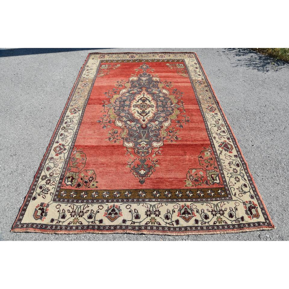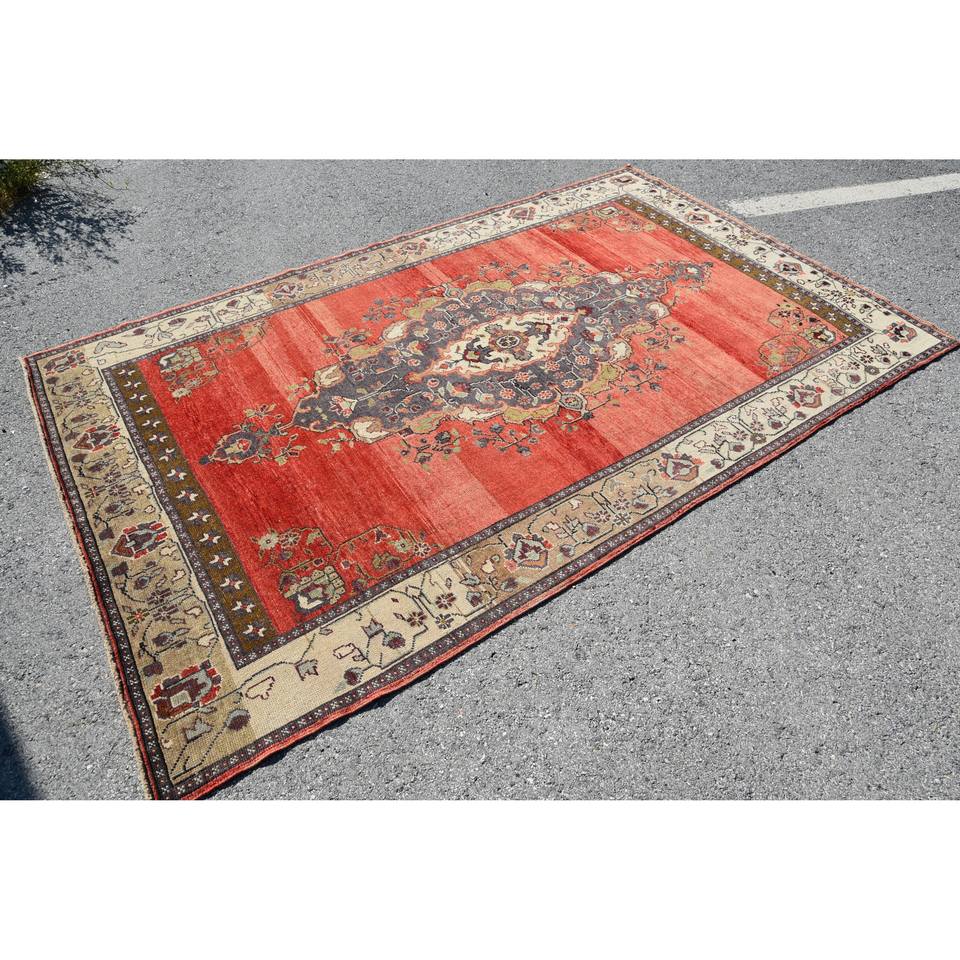 Classic Red Beige Wool Rug 5.3' X 8.6' Kilim Style Patchwork Design 10mm New 9x12 Rectangle Latex for Entryway Living Room