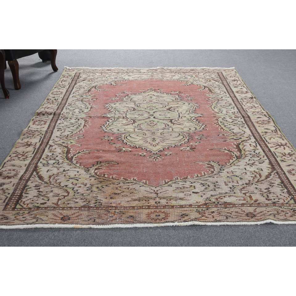 Classic Red Beige Wool Rug 5.6 X 9.2 ft Kilim Style Large Area Turkish Rectangle Rugs Latex Backing for Hallway 10mm Thickness