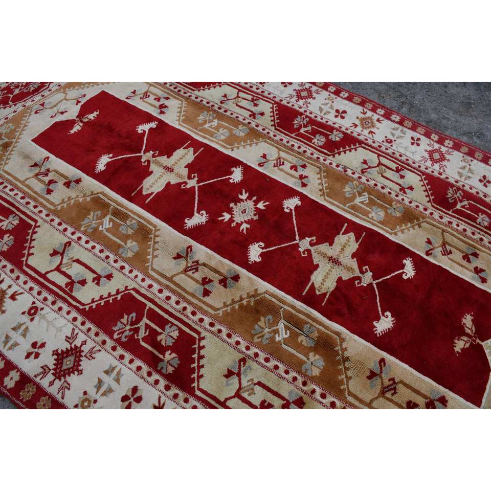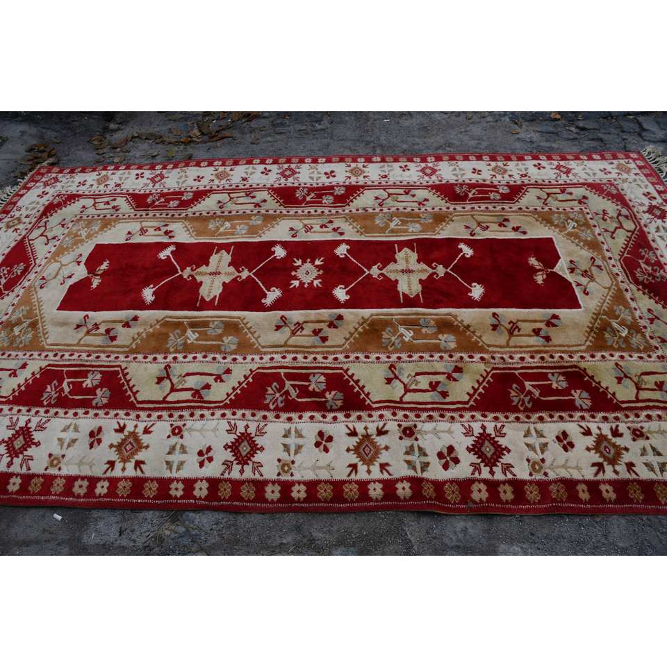 Classic Red Beige Wool Rug 6.5 X 10.8 ft Kilim Style Large Area Turkish Rectangle Rugs Latex Backing for Hallway 10mm Thickness