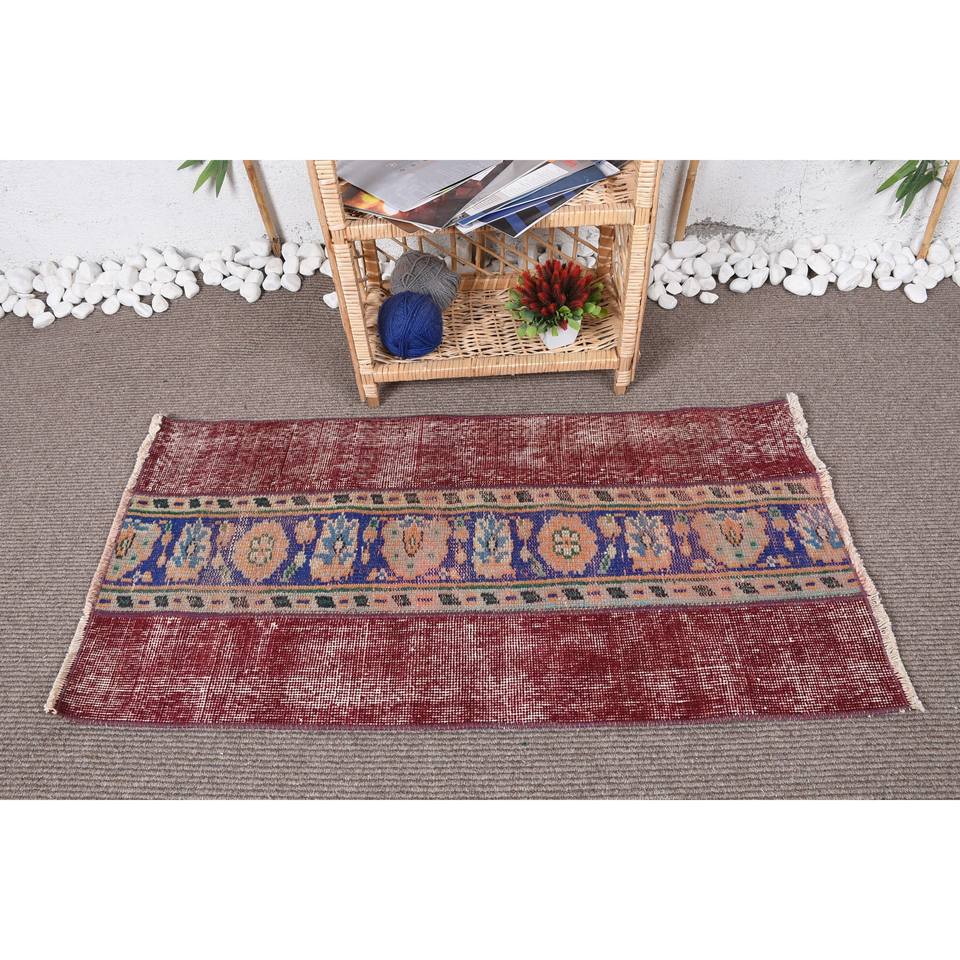 Classic Red Blue Boho Patchwork Wool Rug 2,3 X 3,9 ft Rectangular Latex Backed for Living Room Entryway Hallway 3D Viscose