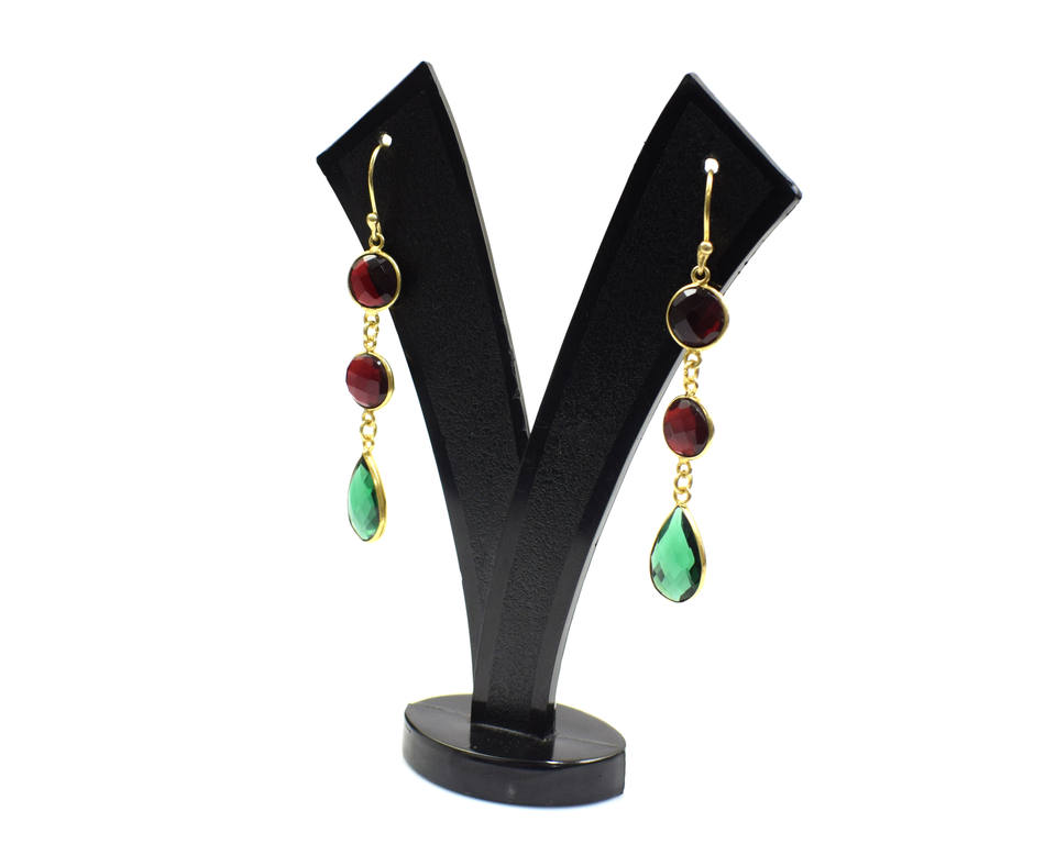 Classic Red Garnet & Green Quartz Gemstone Handmade Gold Plated Hoop Earring
